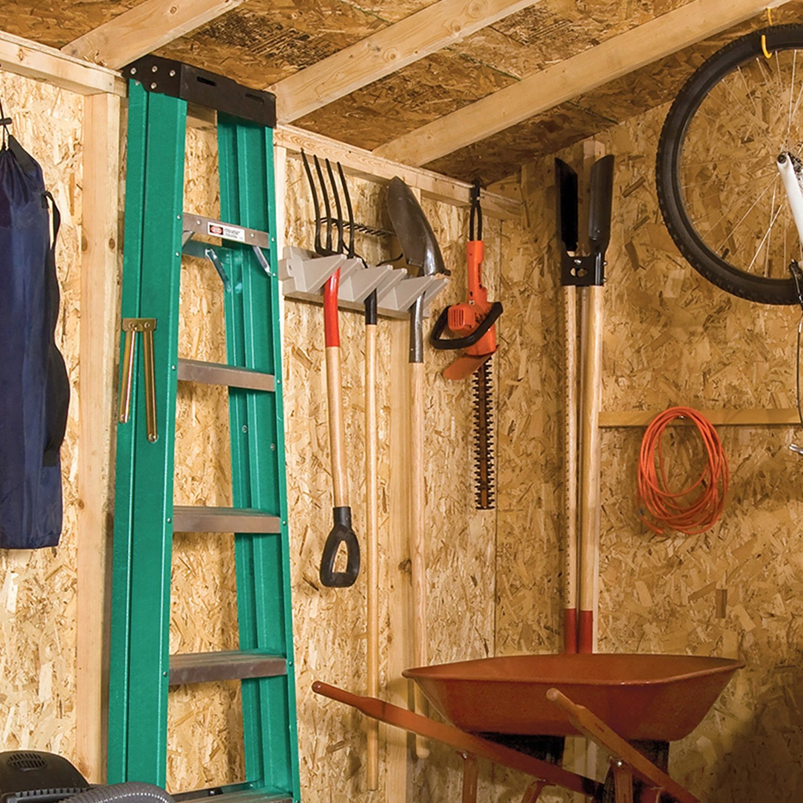 The Sadera Shed offers secure, spacious storage with a compact footprint. Measuring 8′ x 8′ (64 sq. ft.), it’s perfect for housing garden tools, lawn equipment, and outdoor essentials. Tall sidewalls easily accommodate long-handled tools, while the 48-inch wide single door with durable T-hinges provides easy access. A rust-resistant locking handle adds an extra layer of security for your belongings. Build it yourself to save or choose professional installation for a hassle-free setup