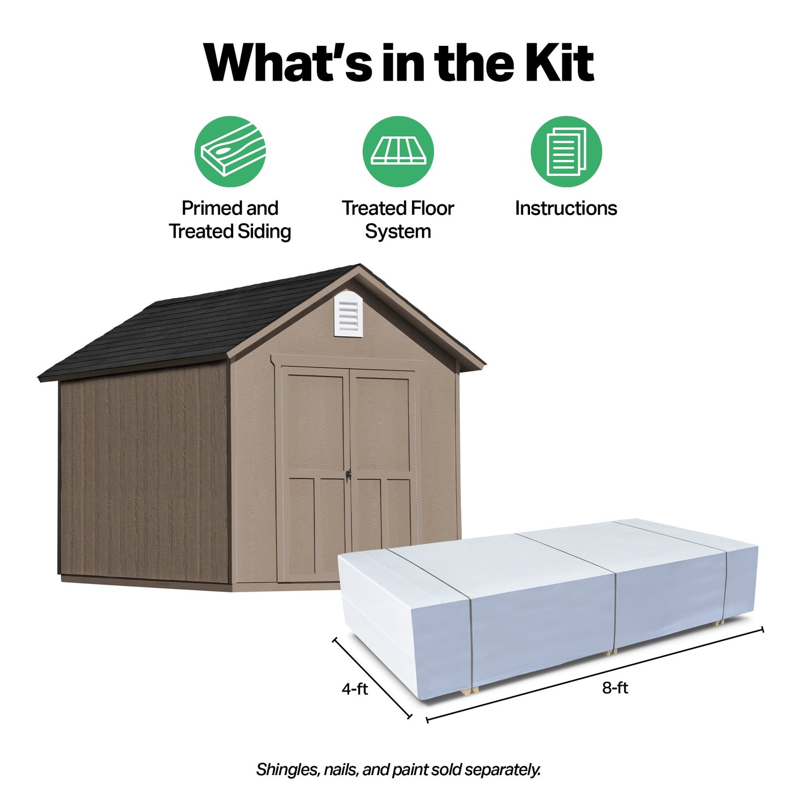 The Savannah shed offers versatile storage with a classic design. Its tall sidewalls easily accommodate long-handled gardening tools, while extra-wide double doors provide easy access to large equipment. The arched gable vent promotes airflow, reducing moisture buildup. A flexible door location allows you to place the doors on the front or side to suit your space. Available in two different sizes to fit your storage needs. Build it yourself to save or choose professional installation for a hassle-free setup.