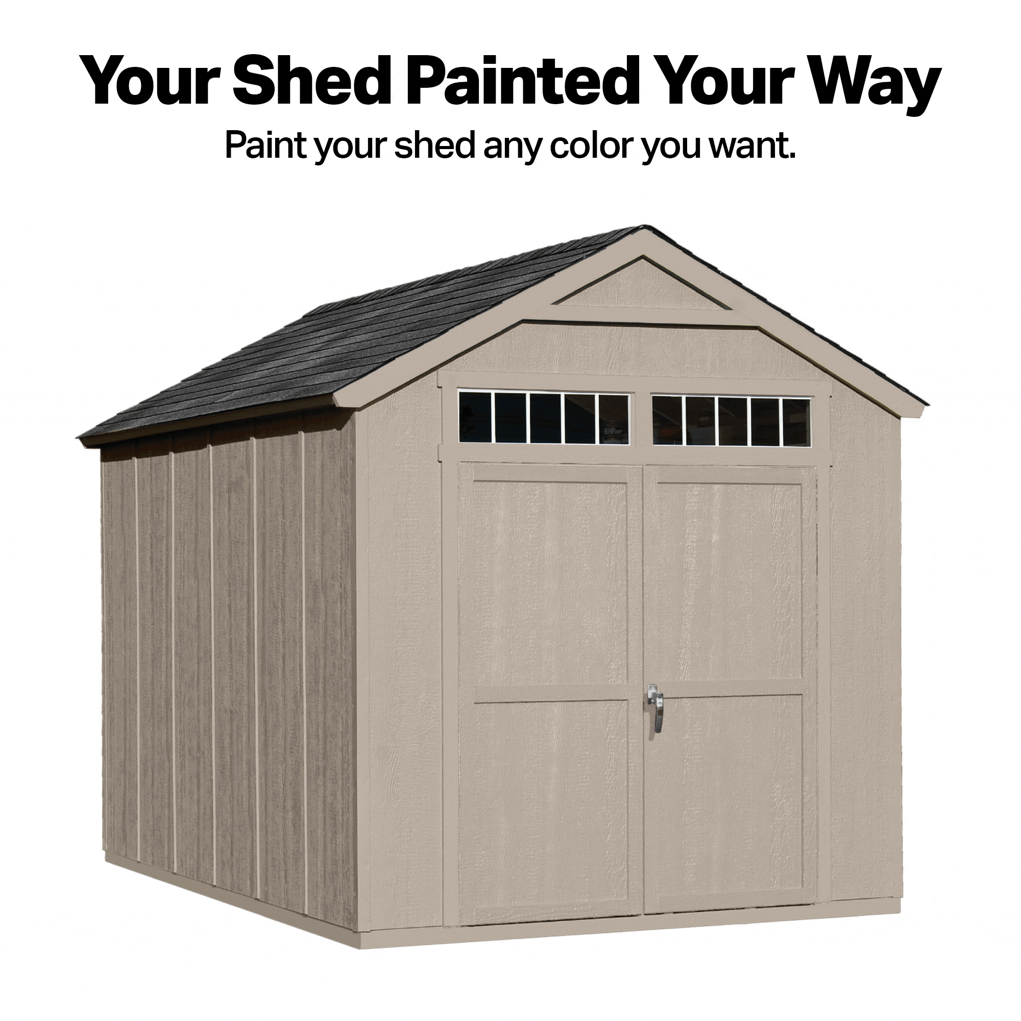 The Siena Shed offers spacious, organized storage with a touch of elegance. Measuring 8′ x 12′ (96 sq. ft.), it features 7-foot tall sidewalls to easily accommodate long-handled tools. The 64-inch wide double doors provide effortless access to large equipment, while two transom door windows fill the interior with natural light. An included shelf and overhead loft add extra storage space, keeping your outdoor essentials neatly organized. Build it yourself to save or choose professional installation for a hassle-free setup.