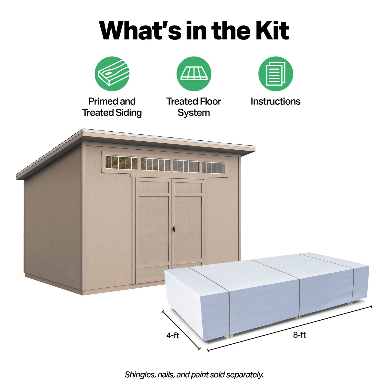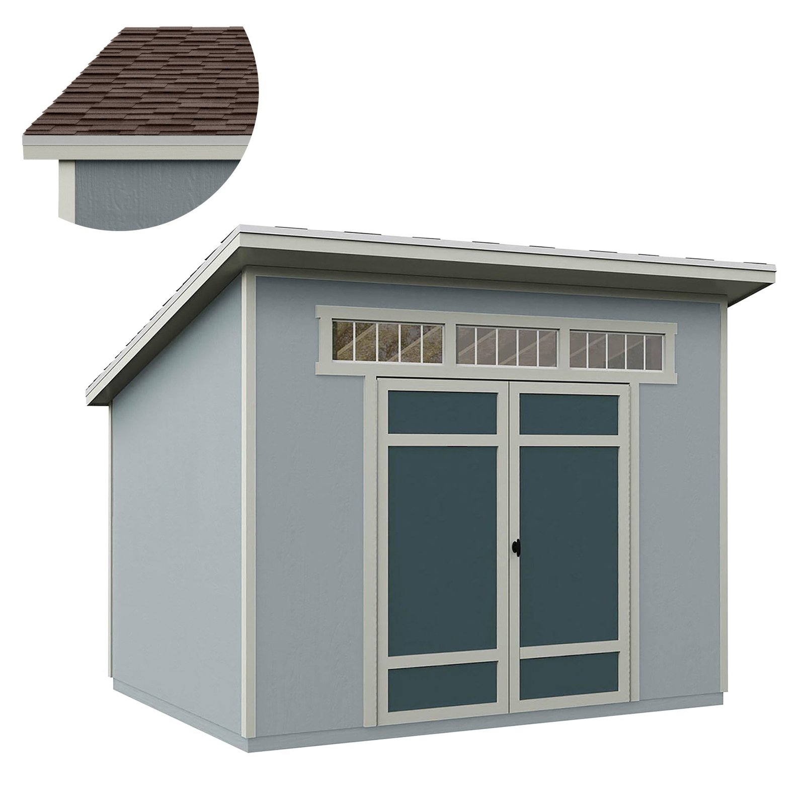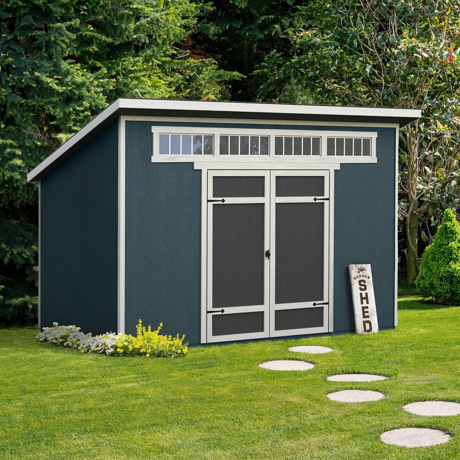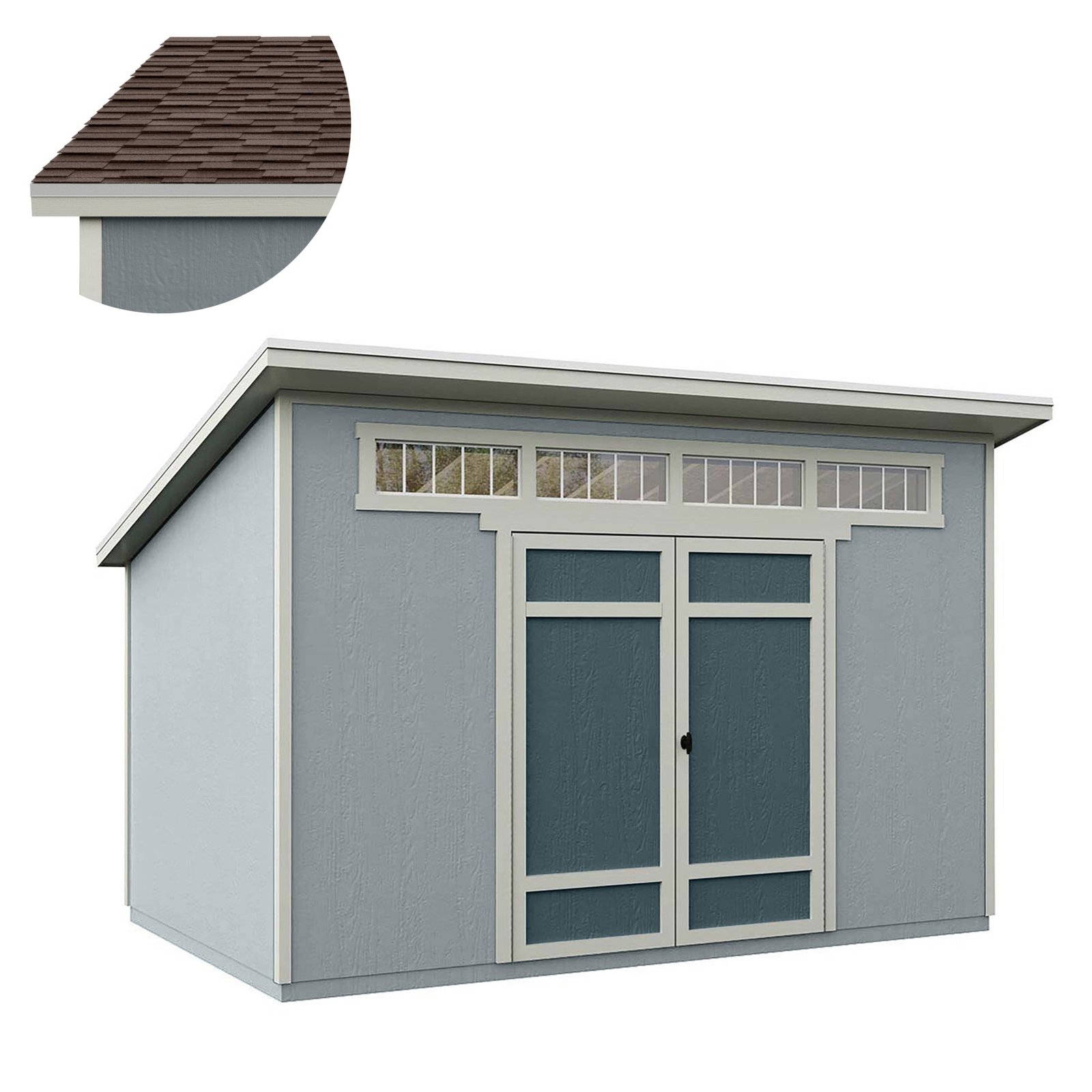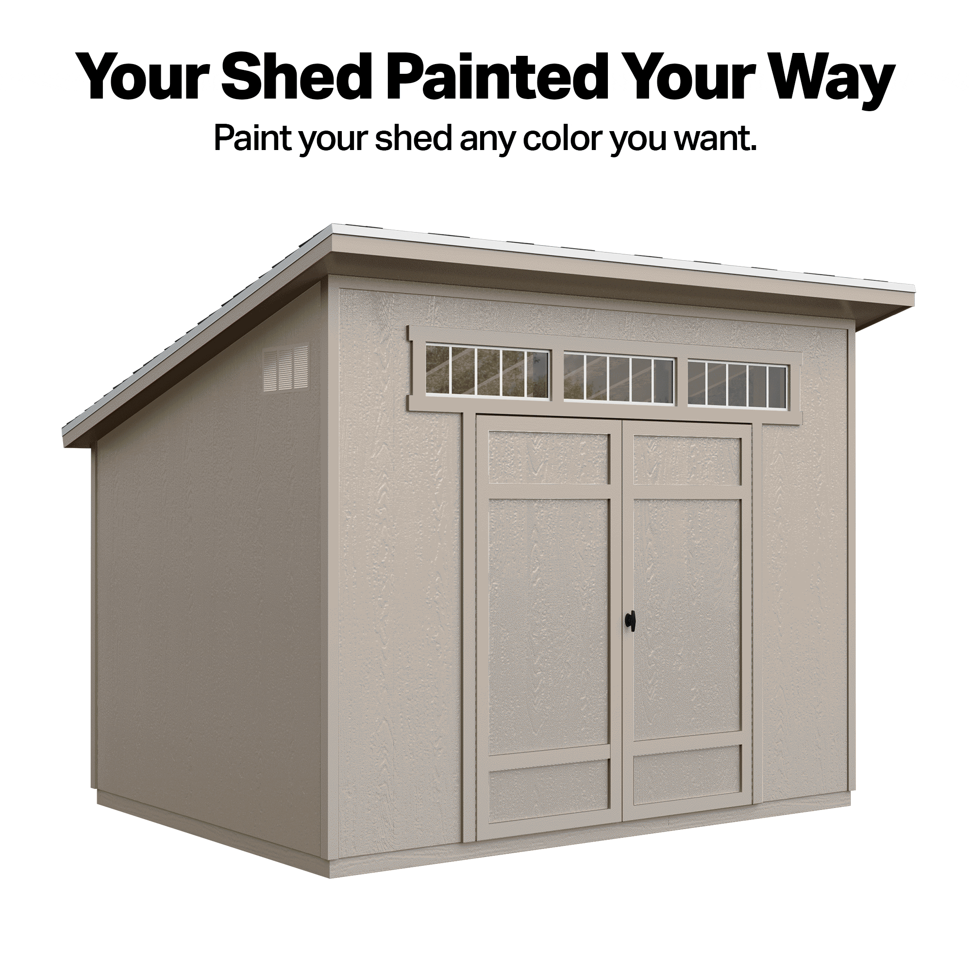The Spokane Shed combines contemporary design with practicality. Available in two sizes, 10′ x 8′ and 12′ x 8′, it offers versatile storage solutions with a sleek single-slope roof and tall sidewalls, perfect for long-handled tools and equipment. The extra-wide double doors provide easy access to larger items, making organization effortless. Build it yourself and save, or opt for professional installation to get started quickly.