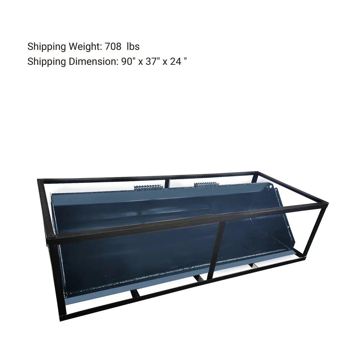 The TMG Industrial 84″ skid steer all-season clean-up bucket is the perfect fit for general use in landscaping and construction industries for all-year-round versatility. The low-profile layout and the wide working width make maneuvering heavy loads more accessible and efficient. An anti-slip step plate is placed on top of the bucket for exiting the skid steer safely. Lifting eyelets are provided for shackles and straps to secure loaded materials.