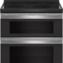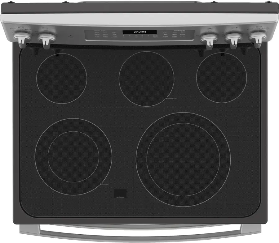Get dinner on the table quickly with this electric double oven range. True convection cooking lets you cook food faster. Convection Conversion will do the math for you to adjust cooking times and temperatures. Skip preheating this kitchen range for frozen favorites like pizza, lasagna, chicken nuggets, fries or pies, thanks to Frozen Bake technology. The FlexHeat triple radiant element is like having 3 elements in one to fit small pots and pans and make room for larger cookware on the range stove. And if you make a mess, AquaLift self-cleaning technology provides this kitchen range with odor-free cleaning without harsh chemicals in only 50-minutes.