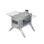 Highly portable nesting legs and shelves fold flat to the stove body; 5 pipe sections, spark arrestor, and an ash scraper stow inside the stove body.