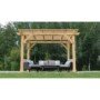 This unique design will become an instant and beautiful focal point in your backyard. The multilevel roof structure has profiled beam and trellis ends, and the crisscross trellis joists that add both strength and style. Like all Yardistry products, this pergola is built with premium Cedar lumber.