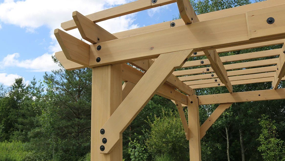 The 10 x 12 Meridian Pergola comes ready to assemble with all wood pre-cut, pre-drilled, and pre-stained and includes simple to follow illustrated instructions. We have also created a helpful hints video that will make your installation quick and easy.